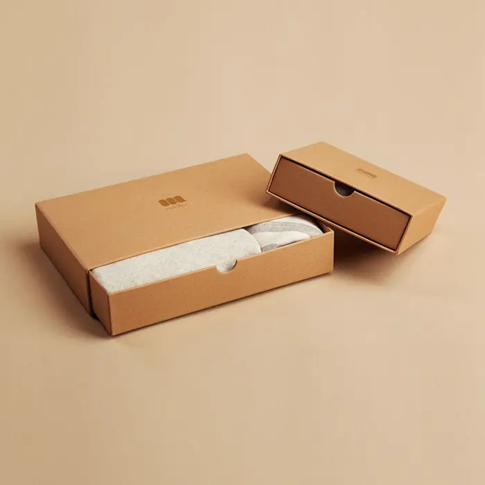 Brown apparel packaging boxes are made from high-quality kraft material, making them a top choice for eco-friendly apparel packaging. These boxes are recyclable and biodegradable, helping brands reduce their environmental footprint.